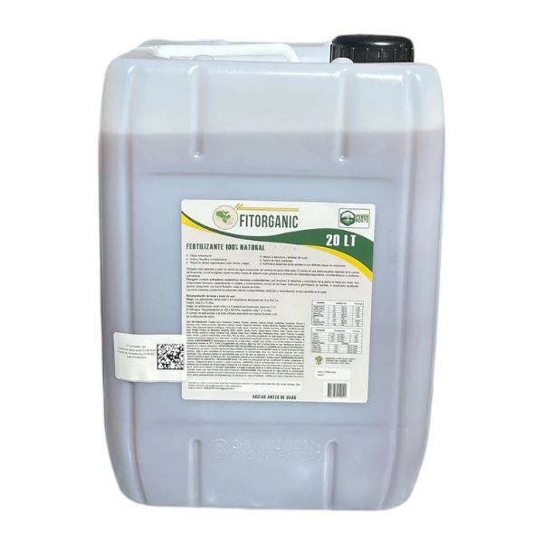 EMPAQUE DE: 20L Extracto líquido 100% natural, elaborado a partir de plantas acuáticas de agua dulce, enriquecido con corteza de sauce (Salix alba). Su procedencia vegetal le entrega una Bio-nutrición equilibrada a las plantas. Fitorganic contiene activadores metabólicos naturales y antioxidantes, que favorecen el desarrollo y crecimiento de la planta en todas sus fases. Sus componentes favorecen especialmente el cuidado y funcionamiento normal de las hojas. Fitorganic estimula la germinación de semillas, el crecimiento equilibrado general, asegurando una buena floración, cuaja y llenado de frutos. Los micronutrientes y ácido fúlvico presentes mejoran la disponibilidad, absorción y mineralización de los nutrientes en el suelo. Es una buena fuente de materia orgánica pura y rica micronutrientes necesarios para la producción de los cultivos. Puede ser utilizado vía riego y/o foliar en todo tipo de cultivos.